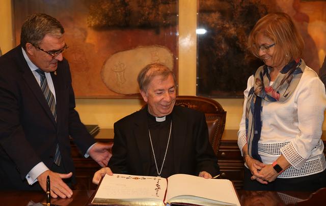 El Bisbe ha signat al llibre d’honor de la ciutat i ha mantingut una trobada amb el paer en cap, la tinent d’alcalde Montse Parra, el president del grup de CiU, Antoni Postius, el portaveu de CiU, Paco Cerdà, la presidenta del grup del PP, Dolors López,el president del Grup Municipal d'ERC-Avancem i  el president del grup de Ciutadans, José Luis Osorio.