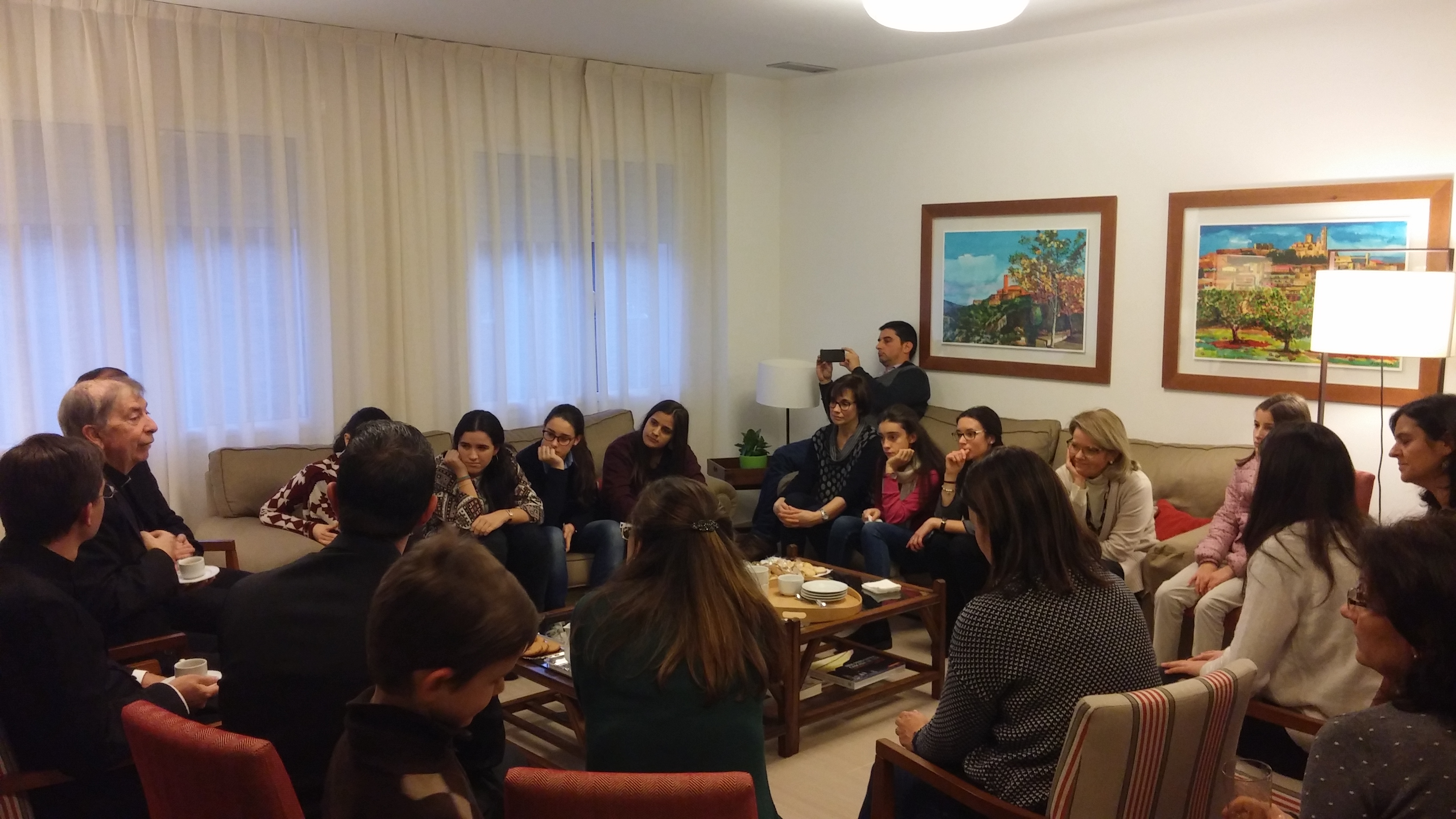 El Bisbe després de visitar les instal·lacions es va reunir amb un bon grup de mares i pares i també noies que van compartir amb ell una estona de xerrada sobre el dia a dia i sobre el Papa Francesc, ja que el mateix dissabte el Sant Pare celebrava el seu 80è aniversari de naixement.