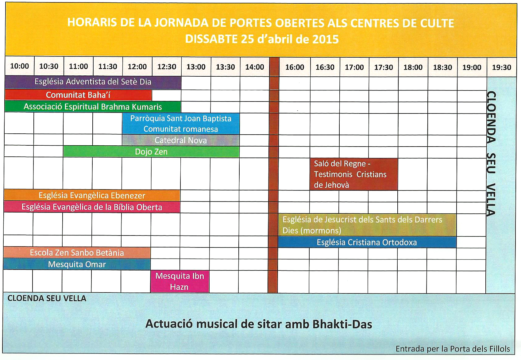 Adjuntem el quadre amb els horaris als diferents centres de culte.