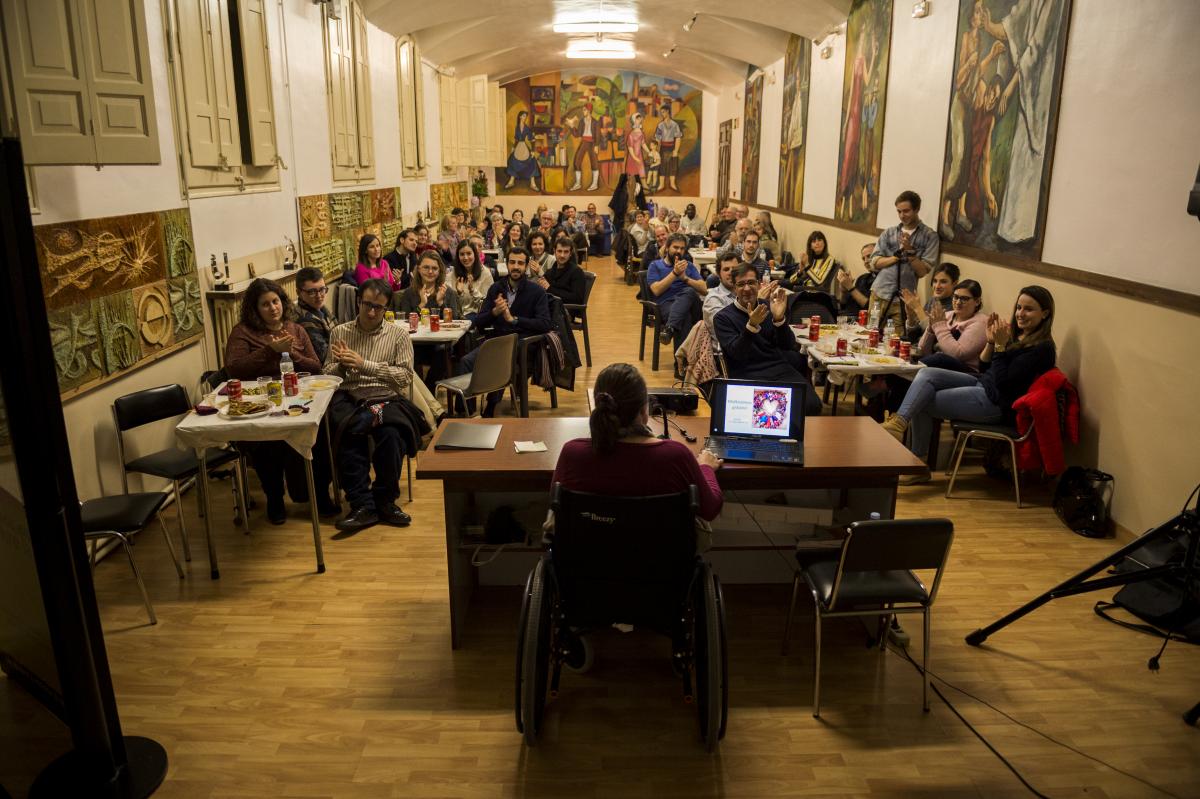 Després del testimoni de la Càrol, els assistents van poder reflexionar i dialogar sobre el tema, per taules, al voltant d'una beguda i una mica de menjar. També van preparar alguna pregunta, que va contestar la nostra ponent.