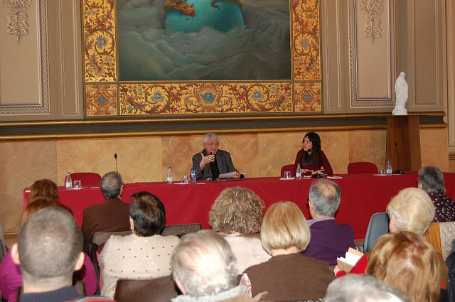 La primera intervenció ha estat a càrrec del professor Salvador Escudé, qui ha senyalat el pecat d’omissió com a dificultat de l’església actual en l’evangelització. Ha animat tothom a acceptar la lectura humana del Crist i la secularització del món, és a dir, a no tenir por de la societat, doncs, des de diferents àmbits es defensen valors cristians i denuncien les injustícies. Ha plantejat també alguns reptes, com per exemple, treballar en equip i prendre decisions col·legiades. L’Església ha guanyat credibilitat en la part social, però li manca credibilitat en altres temes: la família, la sexualitat, la dona... Una ponència enriquidora.