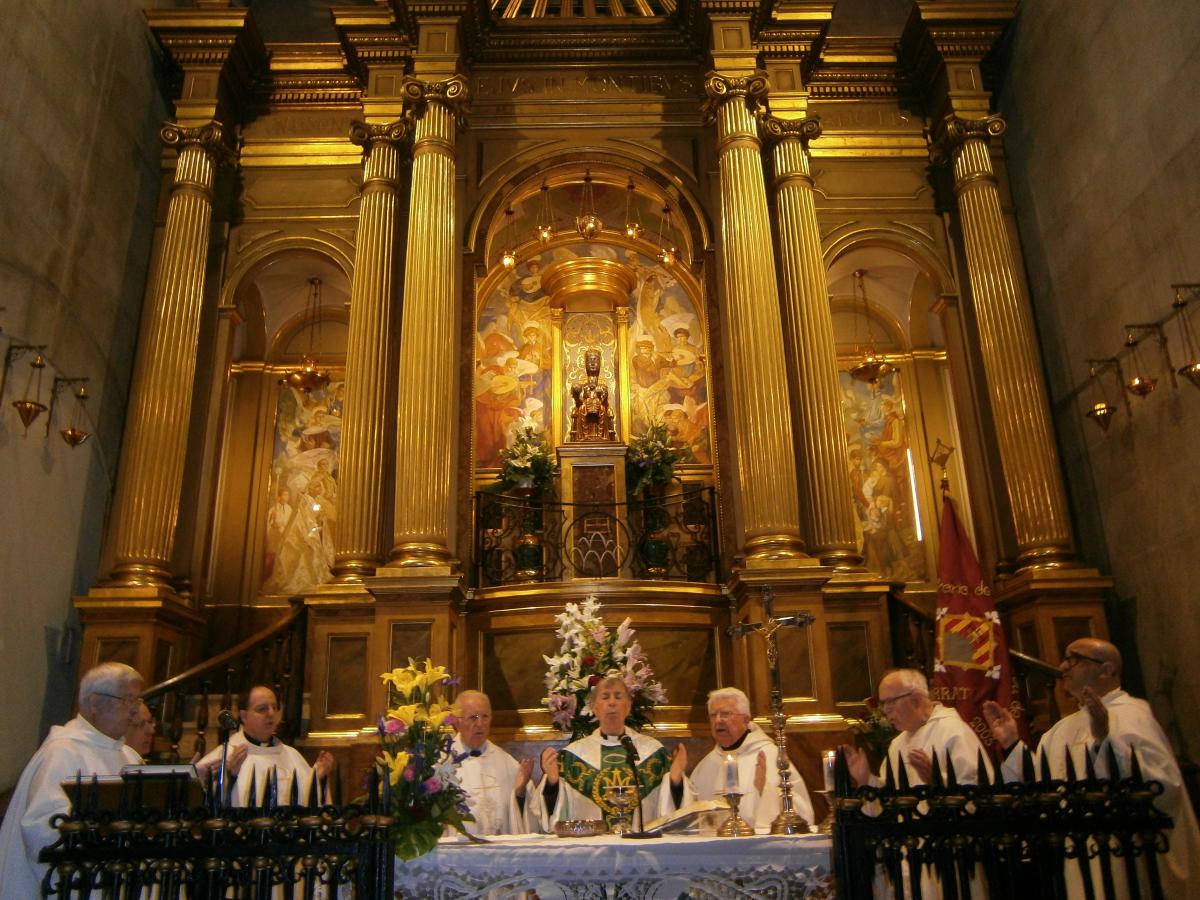 Finalitzada la celebració i després d’escoltar i cantar l’himne “Bruna de Montserrat”, amb lletra de Rosa Fabregat i Solé i música de Mn. Joaquim Mesalles a càrrec del Petit Cor de la Catedral de Lleida; el president de la Confraria Josep Estruch feu una breu salutació i donà la paraula al P. Jaume Sidera, a qui se li havia encomanat una reflexió mariana. El claretià centrà la seva profunda i encertada reflexió en allò que fa gran Maria i en allò que ens la fa més propera, referint-se a quatre noms amb els quals l’Evangeli identifica Maria: L’agraciada, l’esclava serventa del Senyor, la Mare del meu Senyor i la creient: “I què hem llegit de Maria?. És la creient i la qui compleix la Paraula. La grandesa de Maria: creient i serventa del Nostre Senyor està al nostre abast...De manera que la grandesa de Maria la nostra Mare, la compartim tots els que som aquí. Maria som nosaltres”, asseverà el P. Sidera.