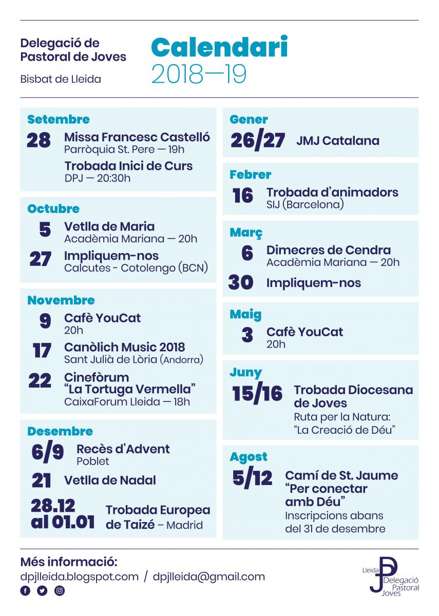 La Delegació de Pastoral de Joves ha preparat per aquest any un munt d'activitats per vetllar pels més joves de la diòcesi. Us animem a participar en les propostes de formació que han preparat per aquest curs.