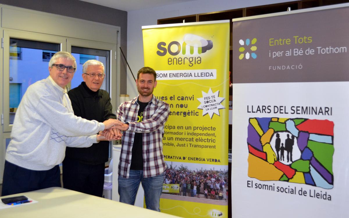 Per part del Bisbat de Lleida ha signat el conveni, el vicari general, Josep Anton Jové, per part de la Fundació Entre Tots i pel Bé de Tothom, Carles Sanmartín i per part de Som Energia, Javier Hernández.