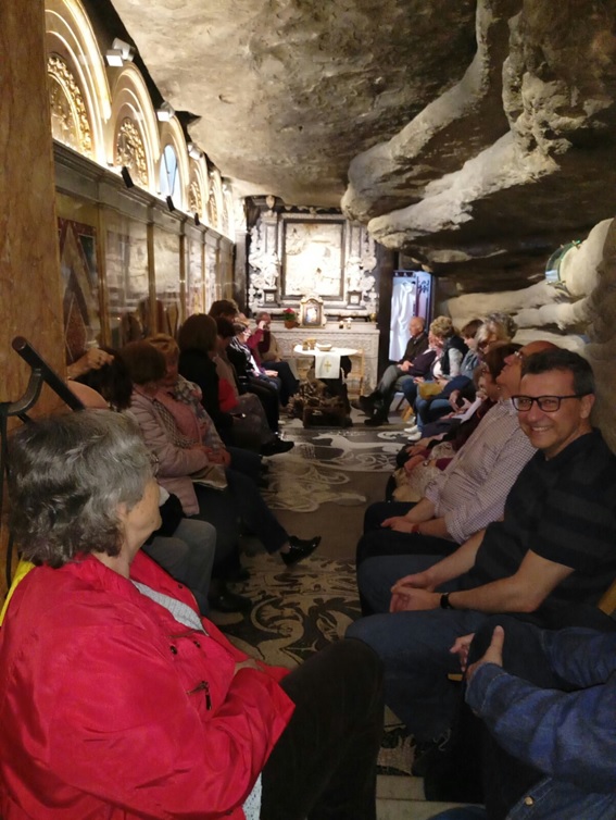 A la tarda, després de dinar plegats a la casa d'exercicis, baixem tots a la cova, com en una terra santa, per celebrar una eucaristia molt viscuda i participada activament.