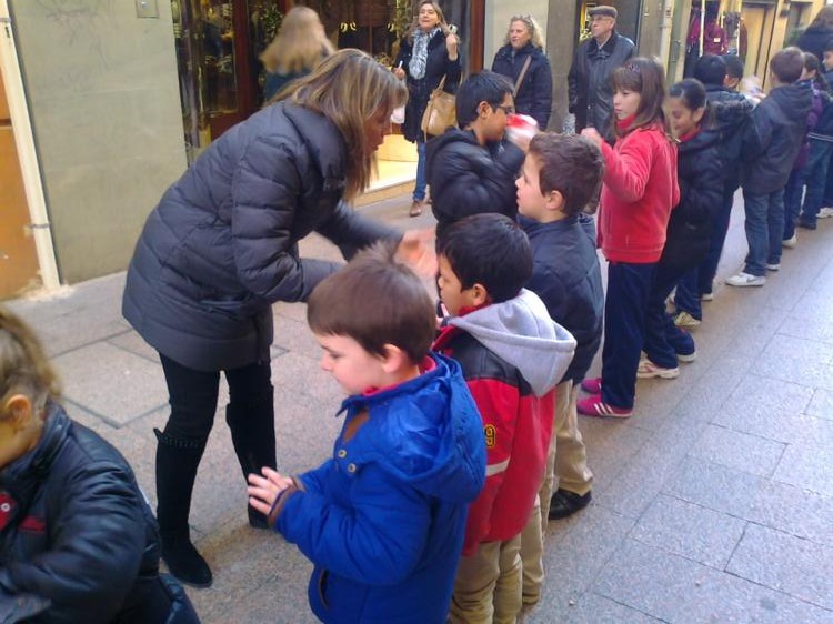 Es van ambientar els patis del col·legi per recordar que la col·laboració i participació de tots era necessària i finalment, tots els alumnes, des dels més petits fins als més grans, amb els seus professors i el personal d’administració i serveis del centre, més de 600 persones, van sortir al carrer i van voler fer arribar amb les seves pròpies mans els centenars de paquets d’aliments que es van recollir a l’escola al llarg de la campanya: pasta, oli, sucs, arròs... fins a la parròquia del Carme (Centre de Solidaritat Jericó) per a les persones menys afavorides.