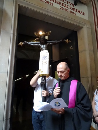A la tarda, per primera vegada es va enlairar la reproducció de la venerada imatge del Sant Crist de Gràcia a Montserrat. El P. Joan M. Mayol, rector del Santuari de Montserrat va acollir els pelegrins, i tots junts van començar l’acte d’entrada per la Porta Santa en processó. Silenci, Lletania de la Misericòrdia, l’Oració del Jubileu. A continuació van venerar la imatge del Sant Crist, als peus de la Mare de Déu i els cantors de La Granadella van començar a cantar els goigs del Sant amb la participació dels presents. Finalment, els romeus van anar al Cambril de la Mare de Déu i van resar el Sant Rosari i cantar el Virolai.
