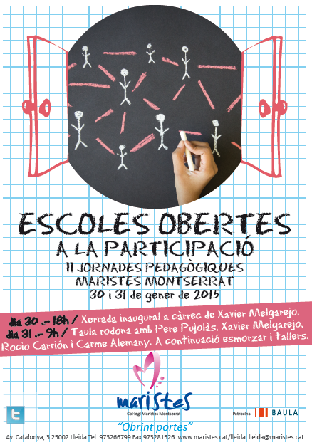 Les inscripcions són gratuïtes i es poden fer des del blog: http://jornadeseducativesmaristesmontserrat.blogspot.com.es/