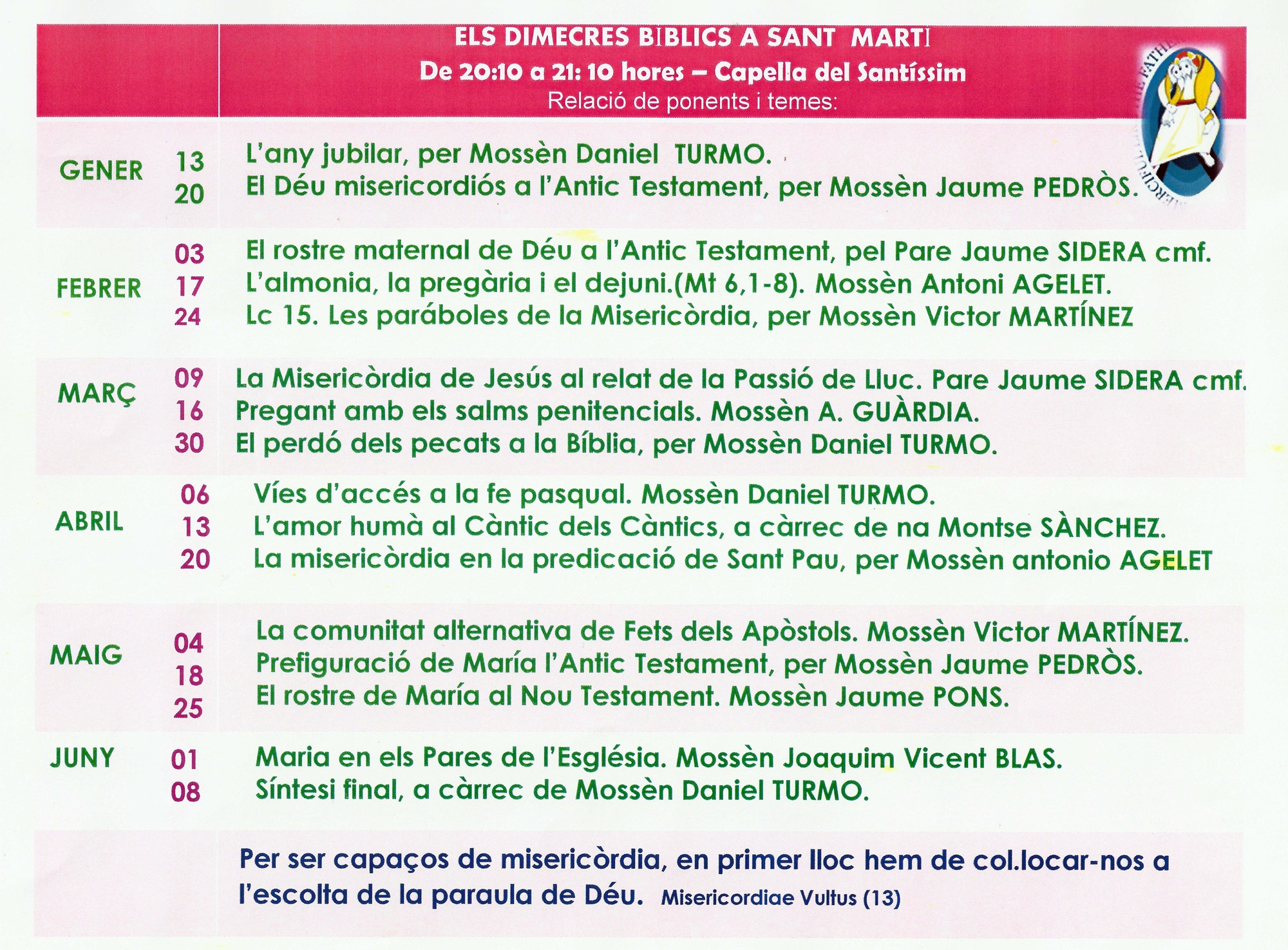 La parròquia de Sant Martí de Lleida ha organitzat un seguit de xerrades formatives en aquest any jubilar de la Misericòrdia. Diversos dimecres des del mes de