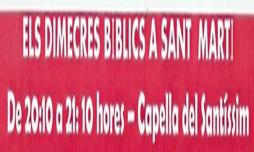 gener fins al mes de juny de 20.10 a 21.10 hores a la Capella del Santíssim, diferents ponents aportaran diverses reflexions bíbliques.