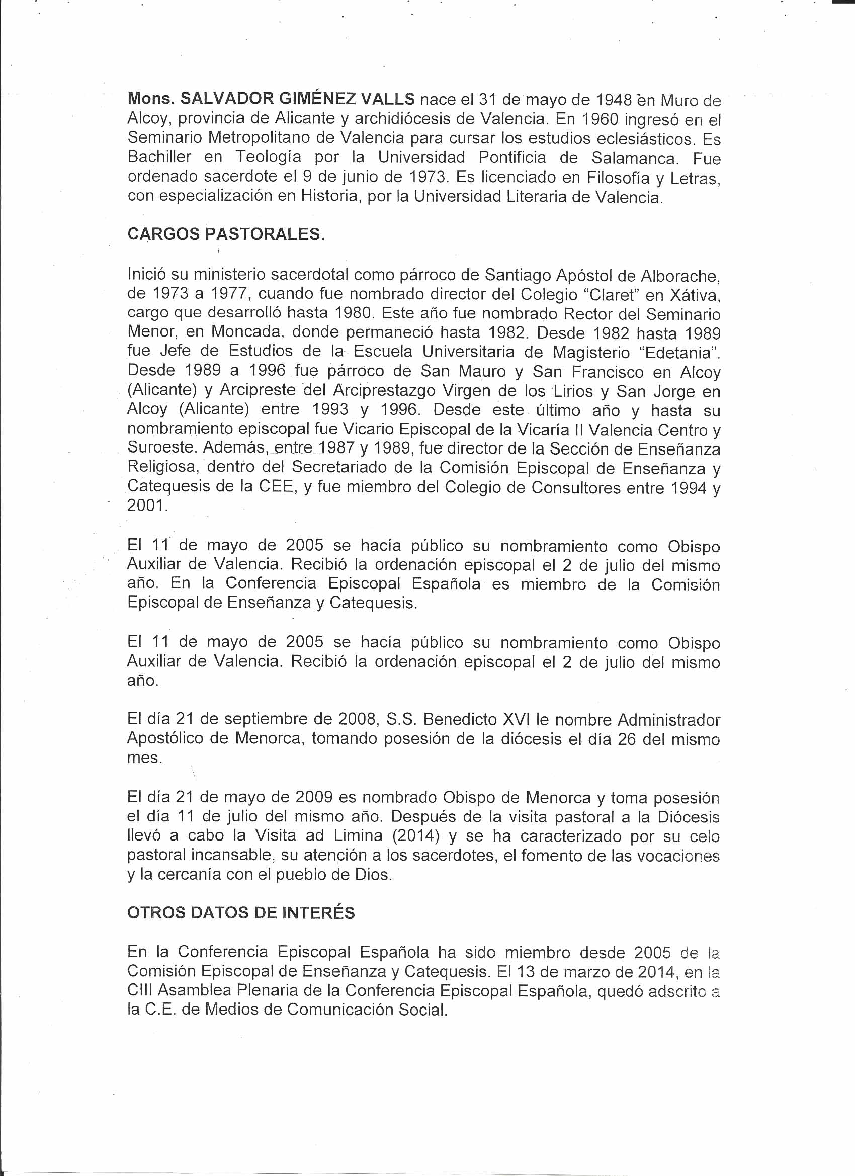 Les darreres paraules de la carta de Mons. Giménez són pel seu antecessor, el bisbe Joan, "que s'ha desgastat durant els últims anys al servei de la comunitat diocesana".