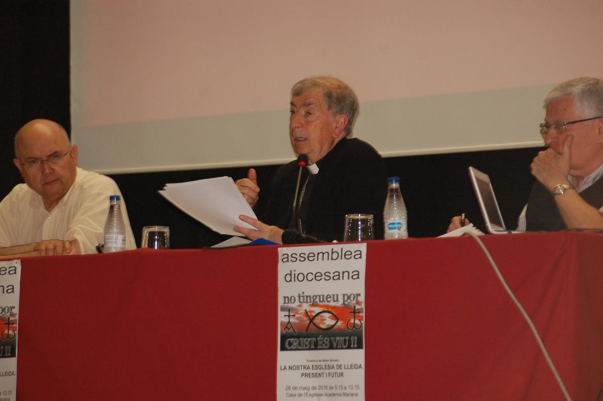El bisbe de Lleida, Salvador Giménez, va tancar la seva ponència dient que “la historia i la situació diocesana actual, ens permeten a tots els que formem part del Poble de Déu que camina a Lleida continuar fent present a Jesucrist amb la paraula i amb la vida i donant credibilitat a la nostra Església”. A més ha afegit “no tenim por de res. Amb molta llibertat i sense vergonya. Jesucrist és present en les nostres comunitats. Ell no ens abandona mai. Ens dóna la vida i dóna pau a tothom. Crist és viu”.