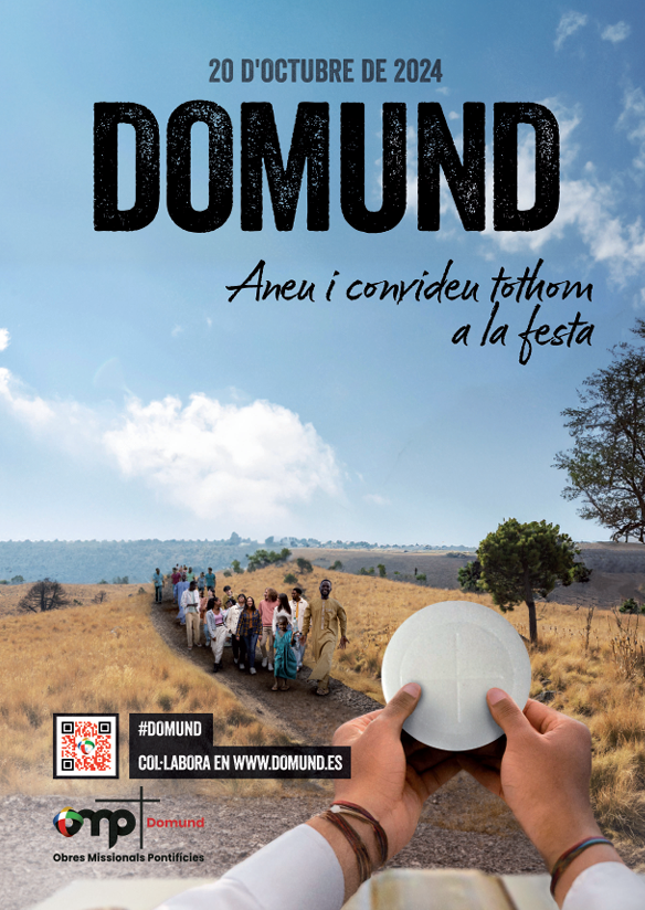 |15-10-24| Este domingo 20 de octubre se celebra la jornada mundial del Domund (DOmingo MUNDial de las misiones). Es el día internacional en el que toda la Iglesia reza especialmente por la causa misionera, y organiza una colecta para cooperar con ella. Es clave para que la Iglesia pueda seguir con su misión en todo el mundo. El lema de la jornada en este 2024 es "Id e invitad a todos al banquete".
