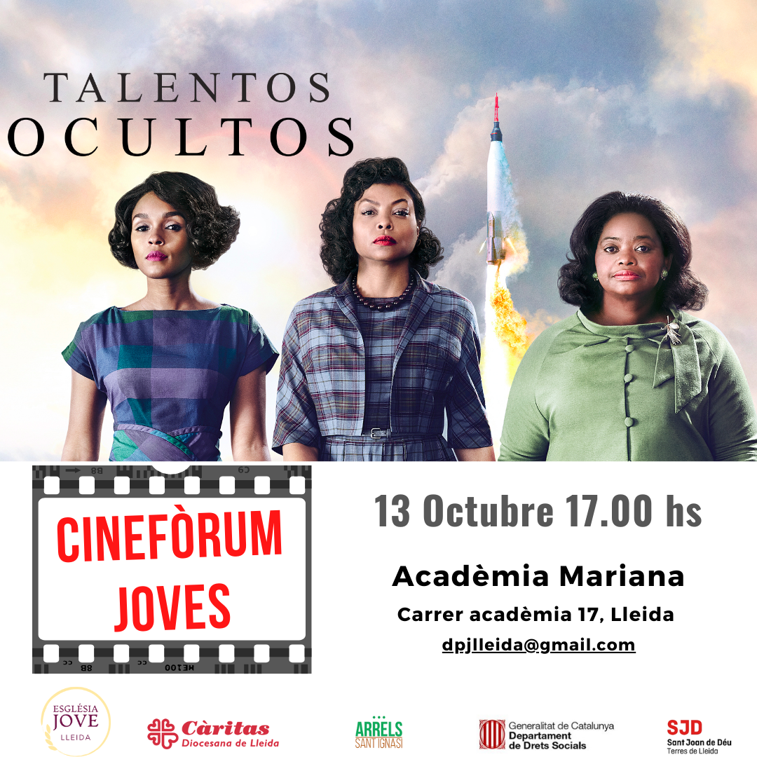 [07-10-24] La Església Jove de Lleida, junto con Càritas, Arrels, Sant Joan de Déu y el Departament de Drets Socials de la Generalitat, proyectará este próximo domingo, 13 de octubre a las 17:00 horas, la película Talentos Ocultos, dentro del ciclo Cinefòrum Joves, que se celebra periódicamente en la Academia Mariana de Lleida.