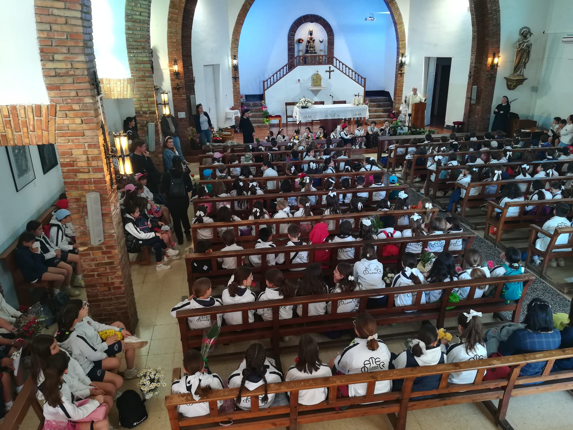 Ofrenda floral de niños y niñas en la parroquia de Montserrat
