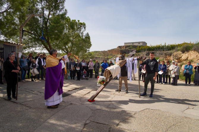 Decenas de personas participan en el Via Crucis de Maials con el Obispo
