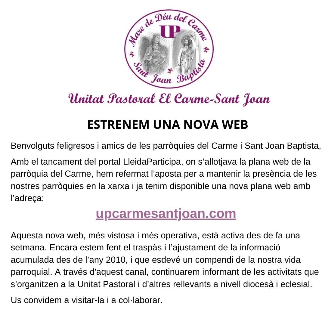 La Unidad Pastoral Carme-Sant Joan estrena página web