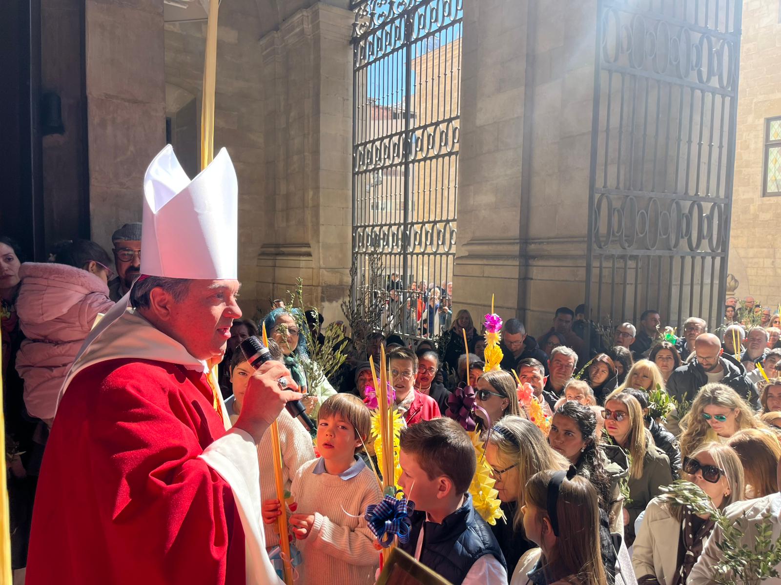 El obispo Daniel preside por primera vez el Domingo de Ramos en la Catedral con una gran participación de familias