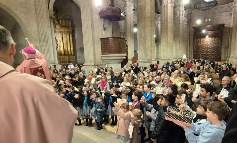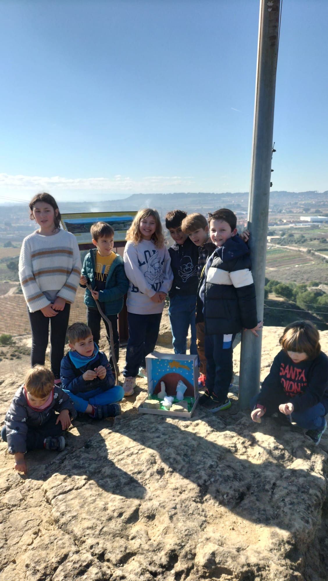 Los niños de comunión de Alpicat suben el pesebre al Tossal de la Corona