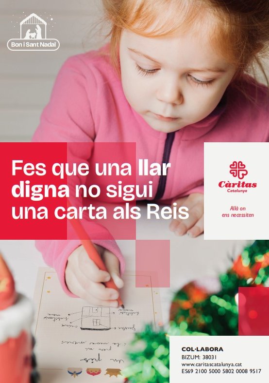 Cáritas Catalunya pone en marcha la Campaña de Navidad con el lema “Haz que un hogar digno no sea una carta a los Reyes”