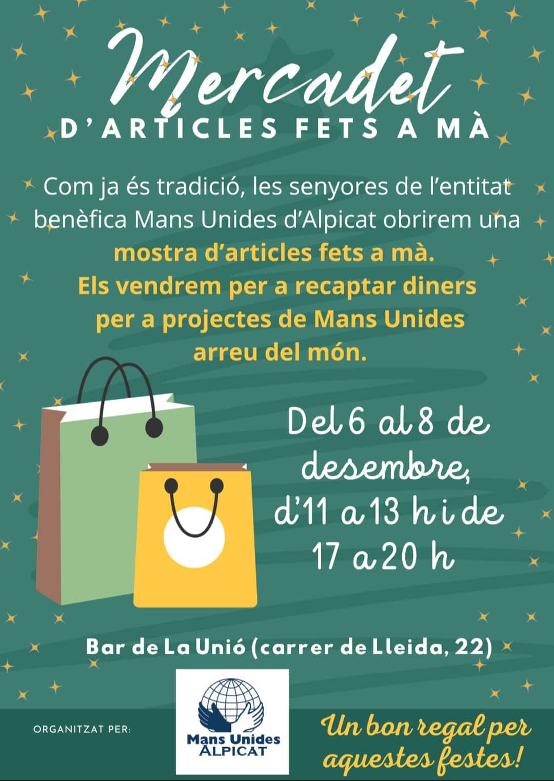 Mercadillo en beneficio de Manos Unidas del 6 al 8 de diciembre en Alpicat