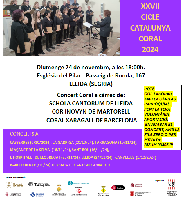 Llega el 27º Ciclo Catalunya Coral en la iglesia del Pilar el 24 de noviembre