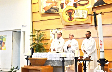 El obispo de Lleida, Salvador Giménez, presidió la misa de las 10 horas de la Parroquia donde también asistió la comunidad del barrio, bajo el lema "Trabajo Decente para todos".