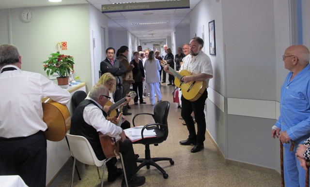 Después, a las 11 de la mañana, la capilla del hospital acogió la Santa Misa con la administración del Sacramento de la Santa Unción. La celebración fue solemnizada con los cantos de la Misa Extremeña por el grupo musical de Pardinyes. Esta misma formación pasó después por todas las plantas de hospitalización e interpretó canciones populares, muy bien acogidas tanto por los enfermos como por los familiares.