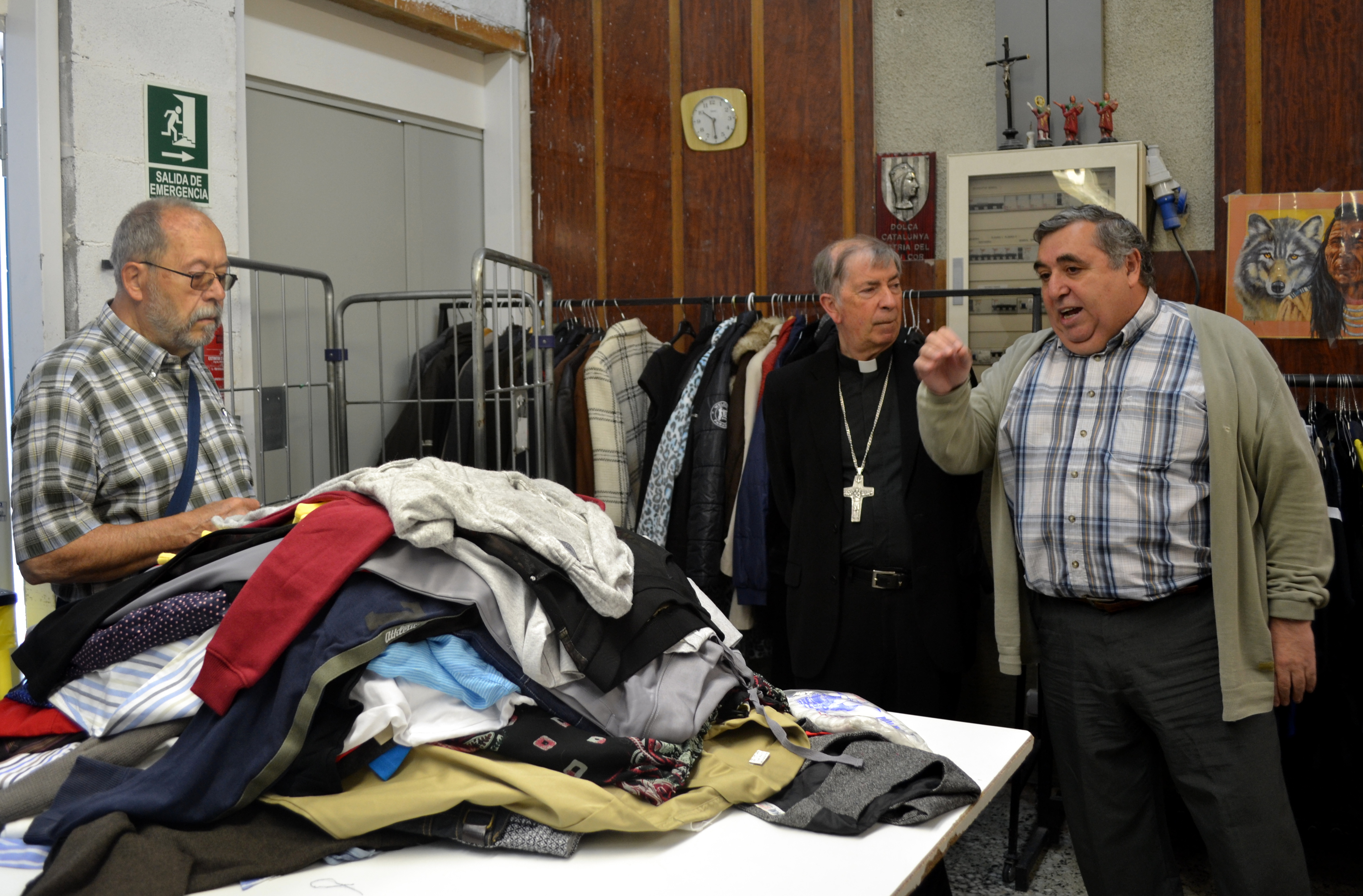 El obispo Salvador siguió la ruta que hace la ropa en la planta, situada en el Turó de Gardeny. La ropa que los ciudadanos dejan en los contenedores de Troballes llega a la planta y se clasifica por apartados. Después la ropa clasificada pasa por un proceso de limpieza muy cuidadoso. Cada pieza de ropa se plancha individualmente y se etiqueta para poder venderla en las tiendas de Ropa Amiga. En la actualidad la empresa Troballes tiene 22 trabajadores.