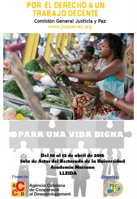 Desde el viernes 10 de abril y hasta el domingo, día 12, tendrán lugar en Lleida las próximas Jornadas Anuales de Justicia y Paz de España. Ésta será la última jornada del trienio que la Comisión General de Justicia y Pau dedicará al trabajo de forma monográfica y lleva por título: Por el derecho a un trabajo decente.