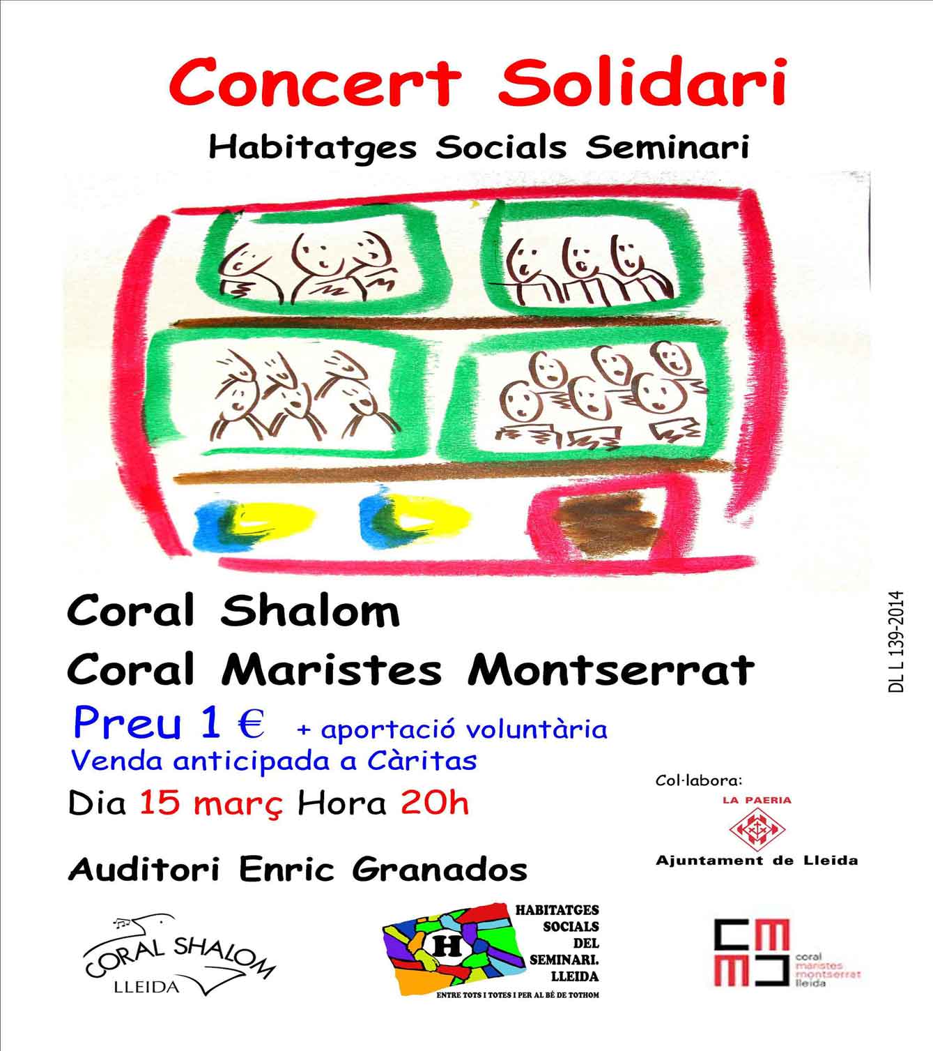 El programa del concierto tendrá tres partes. En la primera, la Coral Shalom, bajo la dirección de Robert Faltus, interpretará un variado repertorio con canciones de Joan Manel Serrat, Rossini, Bruckner, Rachmaninov, Taltabull y del mismo Faltus, entre otros. A continuación, la Coral Maristas Montserrat, dirigida por Gerard Riu, con el acompañamiento de Eduard Espinet, al piano, interpretará piezas de Bach, Raimon, Di Lassus, Wagner y Jackson, entre otras.