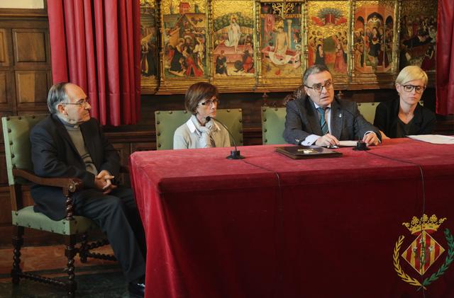 El alcalde de Lleida, Àngel Ros, i la representante de la Fundación de Atención a Personas Desprotegidas de la ciudad de Lleida, Montserrat Segundo, han firmado este martes, 10 de febrero, el contacto y la ampliación de las plazas residenciales para personas sin hogar en el Hostal Jericó, que hace las funciones de albergue municipal.