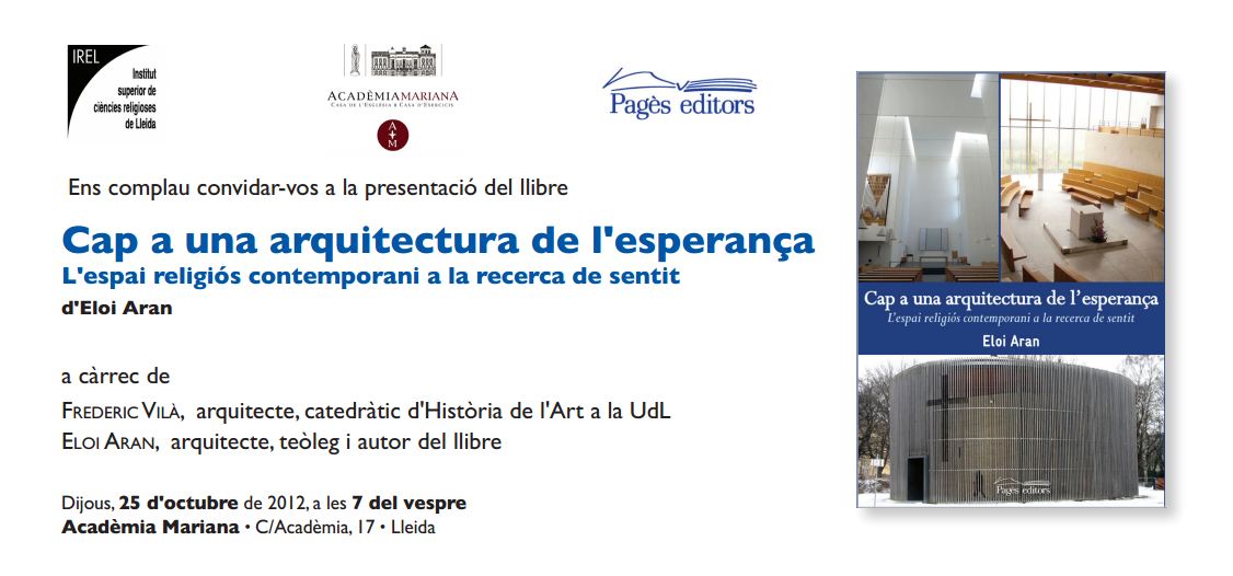 El jueves 25 de octubre a las 19h en la Casa de l'Església Acadèmia Mariana tendrá lugar la presentación del libro "Cap a una arquitectura de l'esperança" de Eloi Aran.