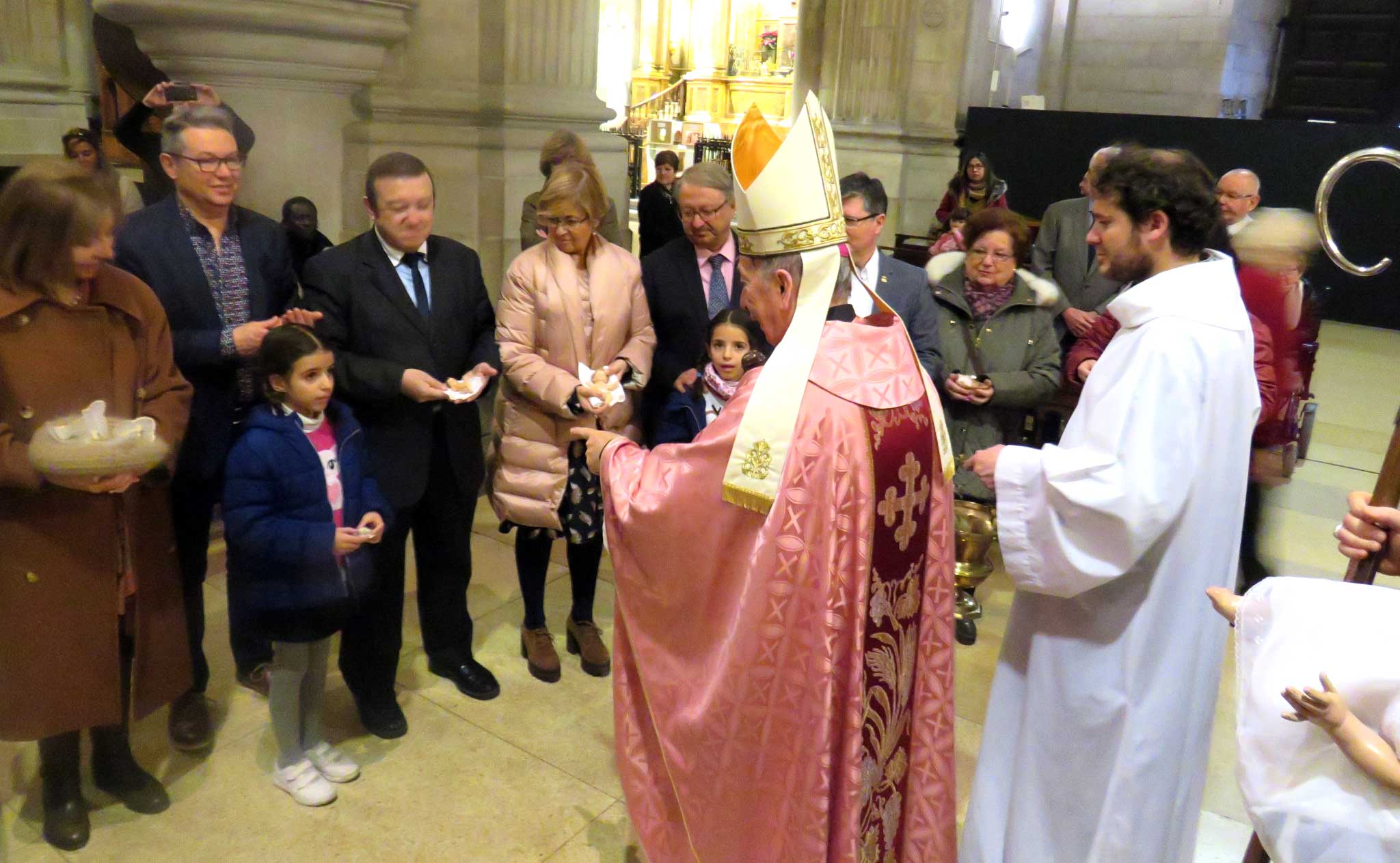El obispo de Lleida, Salvador Giménez Valls, presidió el pasado domingo, en la Catedral Nueva, al finalizar la misa del mediodía, la bendición de los 'Jesusitos', que los niños de Lleida y otros fieles utilizan en sus pesebres.