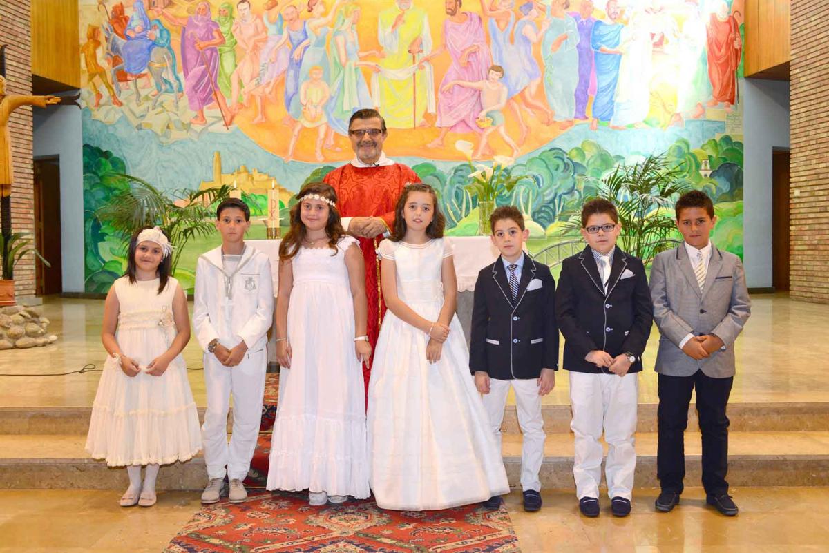 Después de dos años de catequesis preparando su Primera Comunión, estos cuatro grupos de niños y niñas celebraron con sus familias y la comunidad de las parroquias de la Sagrada Familia y Santa Teresa Jornet el gozo de recibir por primera vez el cuerpo de Cristo.