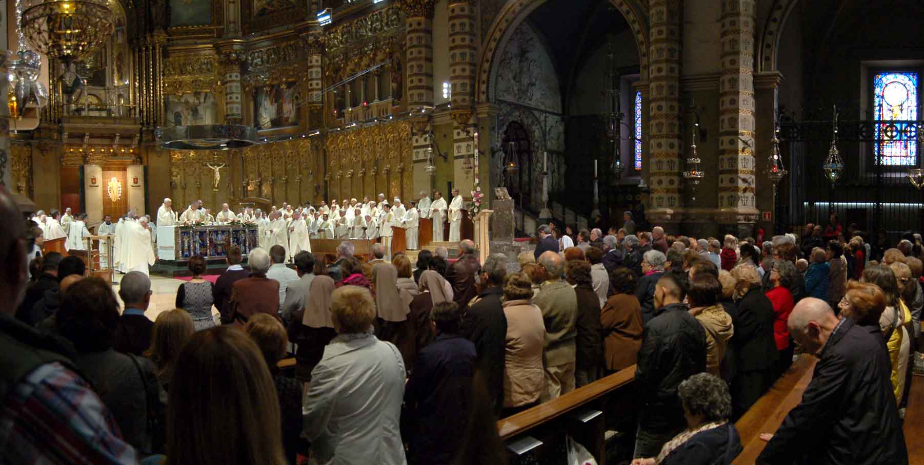 con el cual han concelebrat el arzobispo Piero Marini, los otros obispos de las diócesis catalanas, los monjes del monasterio y un gran número de presbíteros, con asistencia del director general de Asuntos Religiosos de la Generalitat y un gran número de fieles.