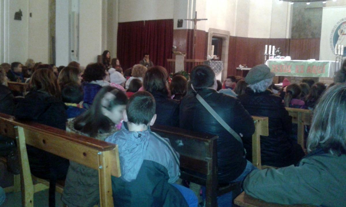 Al llegar había que coger fuerzas con un buen desayuno de torta con chocolate. Después de pasar por la Puerta Santa de la parroquia de la Virgen de la Asunción, todos niños y adultos que los acompañaban se presentaron y cantaron villancicos.
