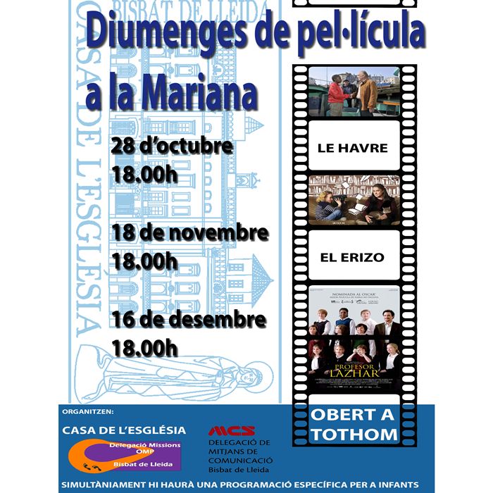 El próximo domingo, 28 de octubre, comenzará un ciclo de buenas películas de cine en la Casa de la Iglesia / Academia Mariana, calle Academia, 17. Bajo el título "Domingos de película en la Mariana", se pretende, mediante