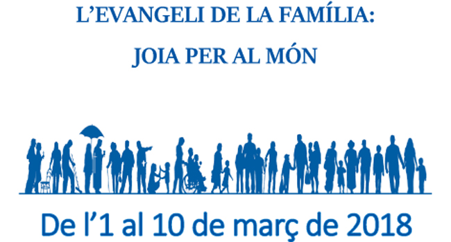 La semana del 1 al 10 de marzo de 2018 todas las diócesis con sede en Cataluña celebrarán la Semana de la Familia y de la Vida. Este año lo harán con el lema 'El Evangelio de la familia: Joya para el mundo'.