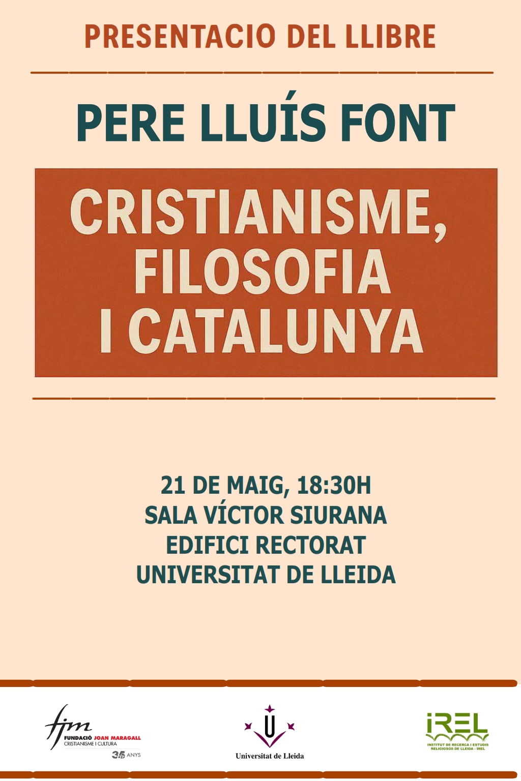 Presentació del monogràfic "Pere Lluís Font: cristianisme, filosofia i Catalunya" el 21 de maig