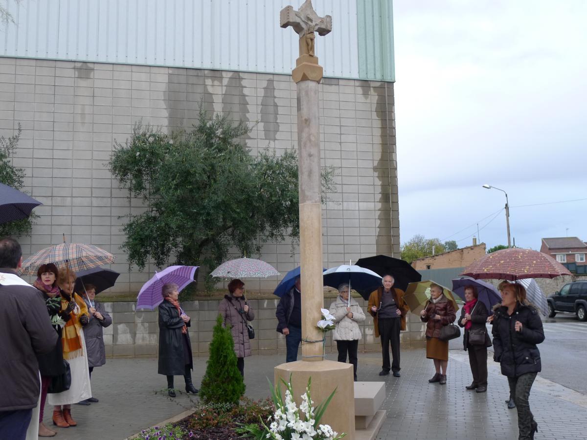 Un cop acabada la cerimònia, i malgrat la pluja, les persones assistents demanaren un record fotogràfic a Mn. Josep amb la Santa Creu.