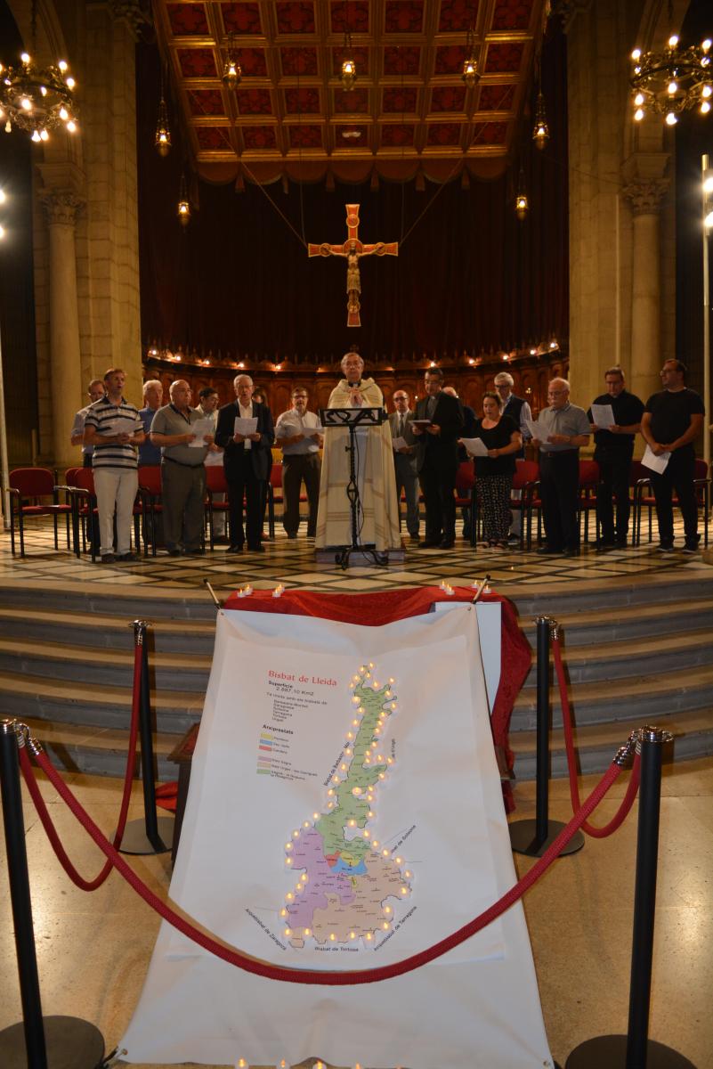 La celebración comenzó con la iluminación de la silueta del mapa del Obispado de Lleida como símbolo de que la luz del Evangelio llega a todos los rincones de la Diócesis. Esta silueta iluminada presidió la celebración en la que el Obispo Salvador ha animado a los fieles “a querer estar en el corazón del mundo para que el mundo sea cada día más justo y conozca más a Jesucristo".