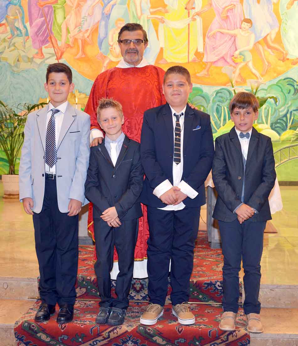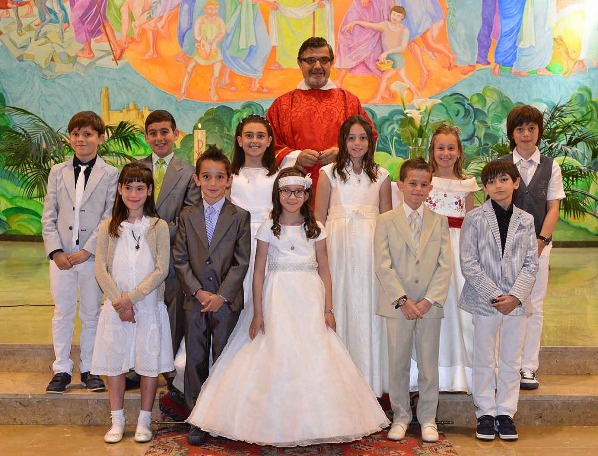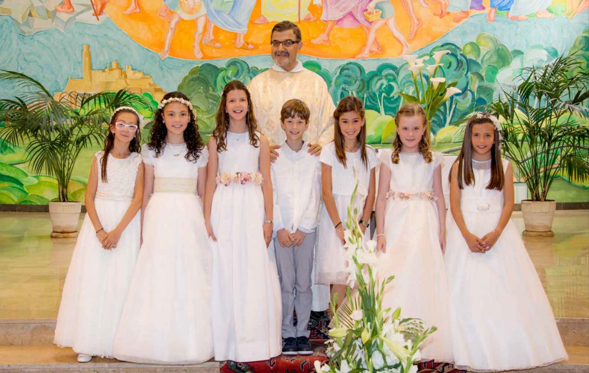 Después de dos años de catequesis preparando su Primera Comunión, estos cuatro grupos de niños y niñas celebraron con sus familias y la comunidad de las parroquias de la Sagrada Familia y Santa Teresa Jornet el gozo de recibir por primera vez el cuerpo de Cristo.