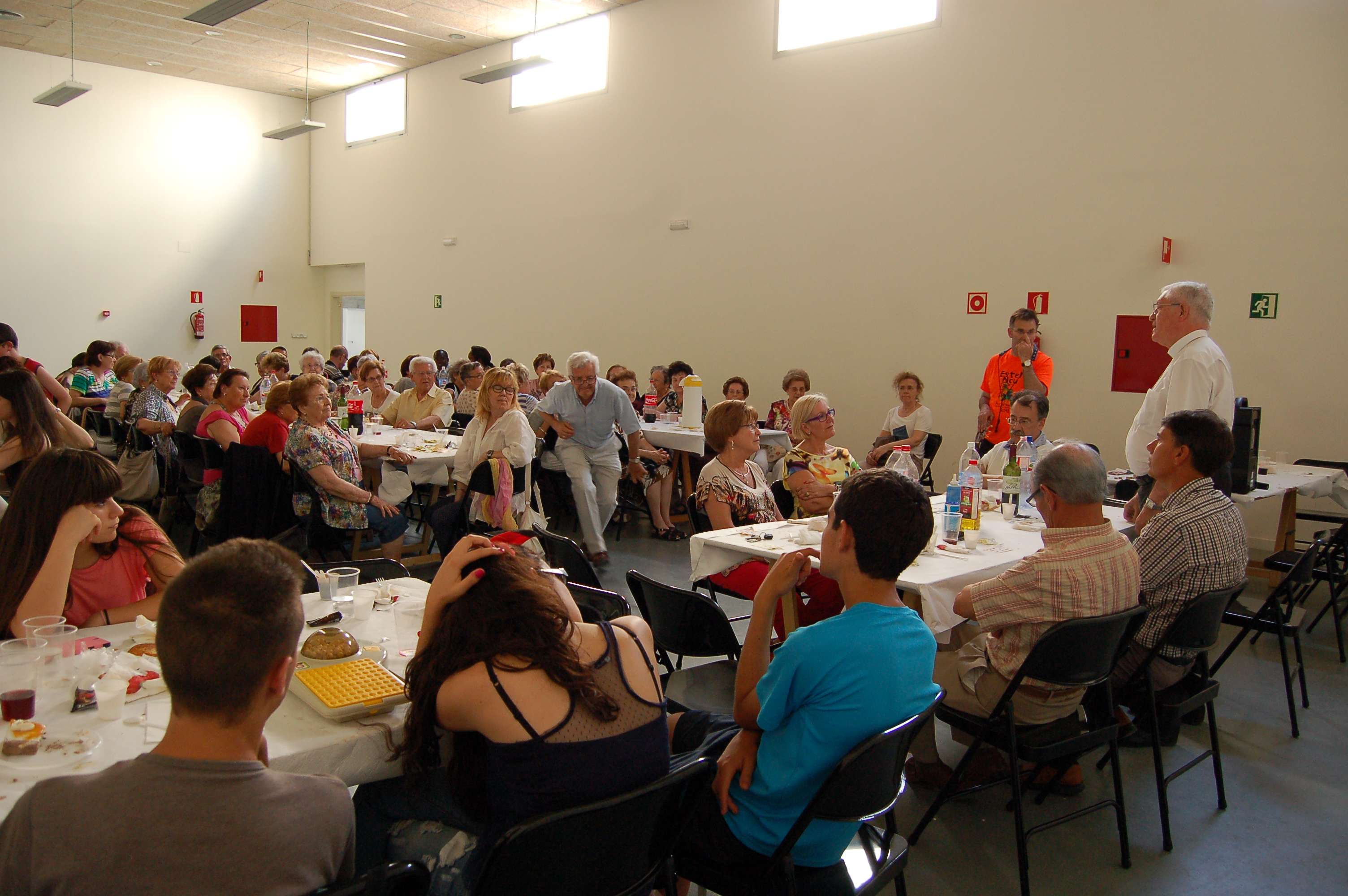 En el almuerzo, que se celebró en un local municipal cedido por el ayuntamiento de Torregrossa, el Sr. Obispo estuvo acompañado por el alcalde de la población, el rector y el vicario de la UP y diferentes miembros de los Consejos Parroquiales.